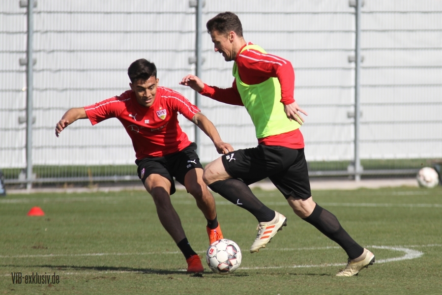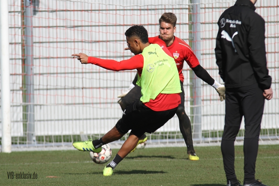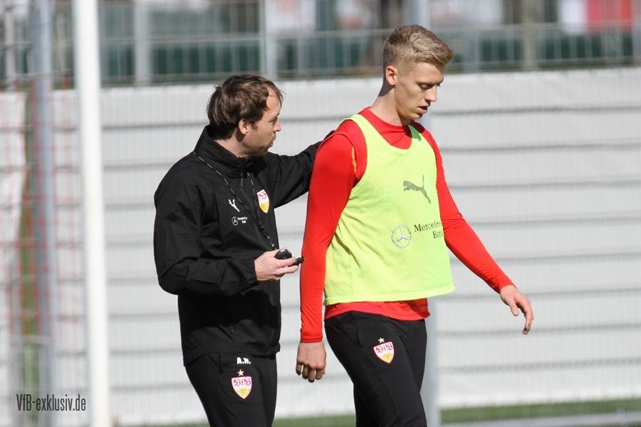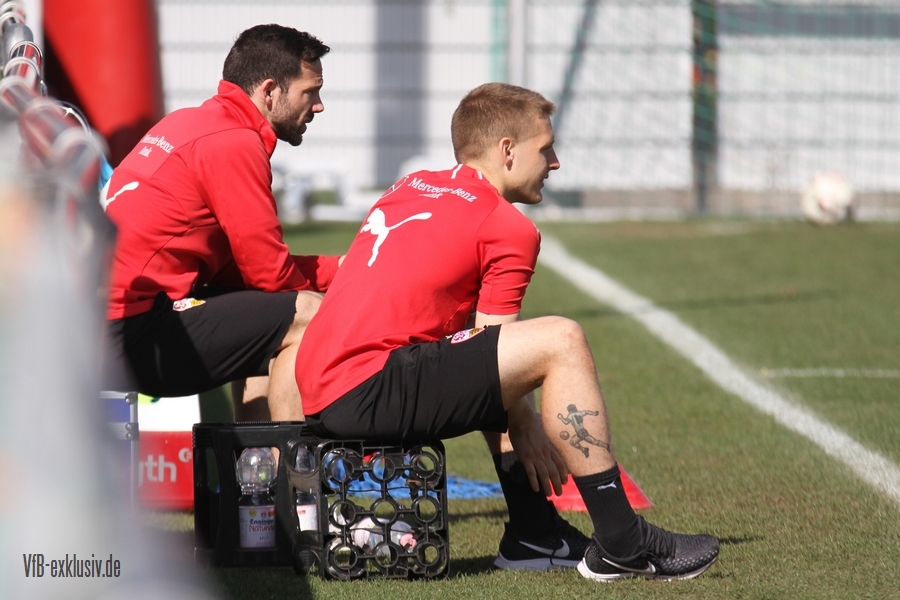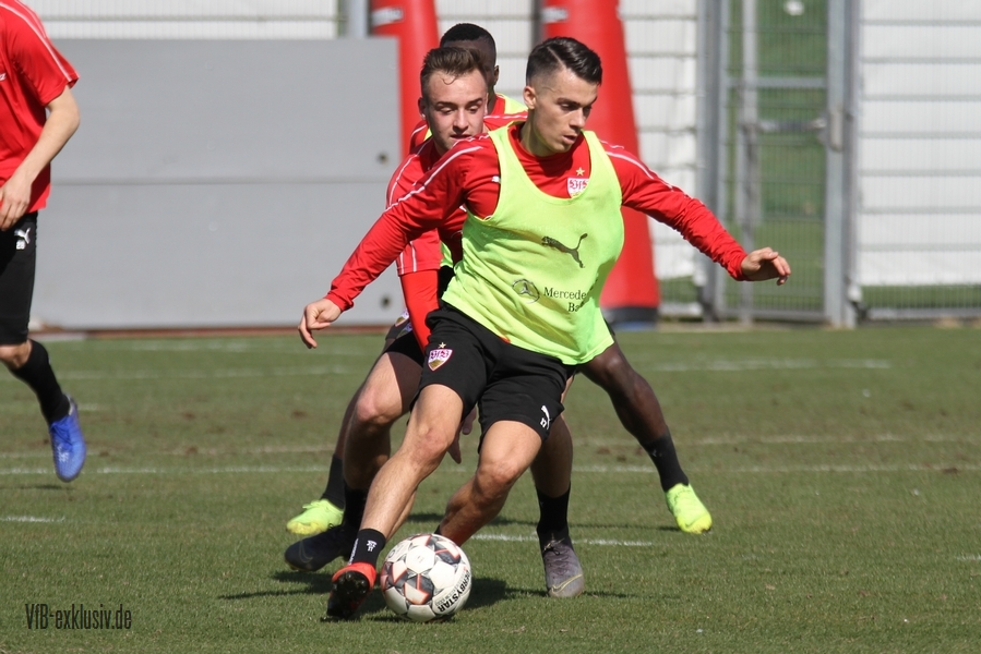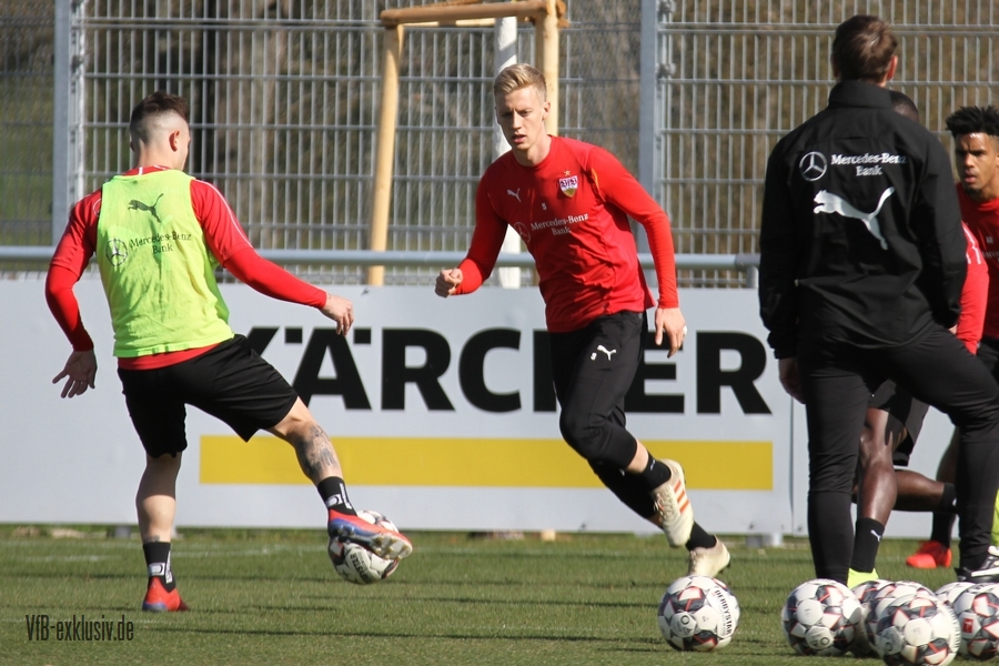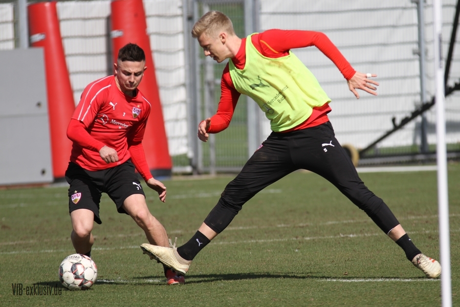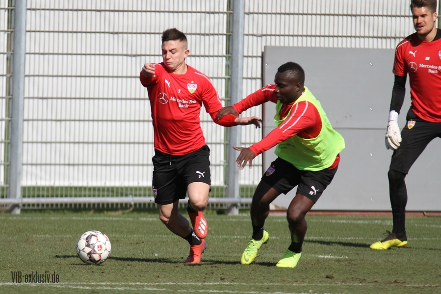 Timo Baumgartl arbeitete sich aus der eigenen Jugend in die Profikader und war immer erste Wahl. Auch vor seiner Gehirnerschütterung stand er beim VfB immer über 90 Minuten auf dem Feld. Er ist bereits schon wieder einige Wochen im Training, doch für die Stammelf reichte es in den letzten beiden Spielen nicht mehr. Mit seinen 23 Jahren hat Timo Baumgartl bereits über 100 Profispiele für den VfB absolviert, 84 davon in der Bundesliga. Die Dreierriege mit Kabak, Kempf und Pavard ist momentan allerdings zu stark, um für das Eigengewächs Platz zu machen. Die Chance für zumindest ein Spiel bekommt Baumgartl, sollte sich Kabak seine fünfte Gelbe Karte abholen, nach dem gestrigen Spiel steht er bei vier. Ansonsten scheinen seine Einsätze erst wieder mit Abgang von Benjamin Pavard eine Option zu sein. Aber im Fussball kann es manchmal schnell gehen. Er schuftete mit dem Reserveteam am Sonntagmorgen, um für den Fall eines Einsatzes bereits zu sein. Mit Kopacz und Thommy war nach dem offiziellen Teil des Trainings sogar eine Extraschicht auf dem Plan.